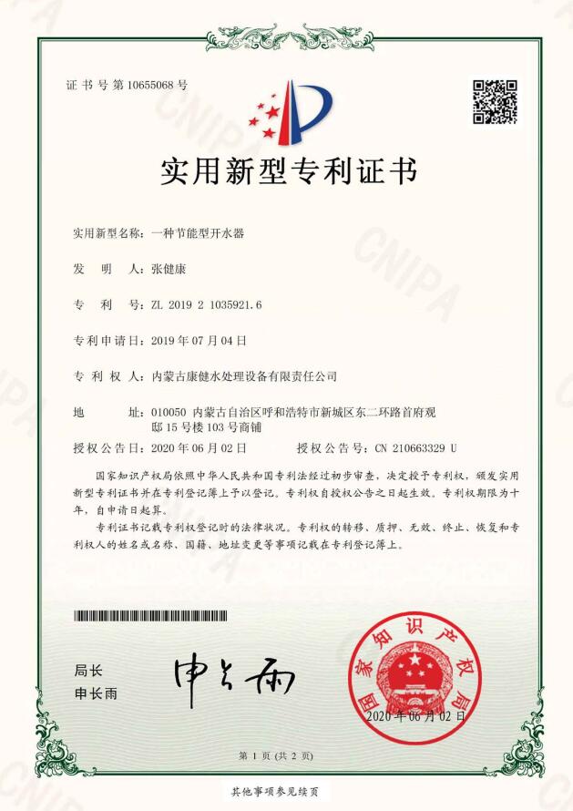 - 內(nèi)蒙古康健水處理設(shè)備有限責(zé)任公司是專業(yè)生產(chǎn)制造水處理設(shè)備、飲料設(shè)備、奶設(shè)備、殺菌設(shè)備、灌裝設(shè)備五大系列90余種配套產(chǎn)品。在反滲透、超濾、納濾、EDI模塊、等膜分離領(lǐng)域有著雄厚的技術(shù)實(shí)力,同時在水廠設(shè)計、中水回用、污水處理、分質(zhì)供水、無負(fù)壓變頻供水、鍋爐軟化水設(shè)備等領(lǐng)域有完善的技術(shù)團(tuán)隊和營銷網(wǎng)絡(luò)。公司坐落在遼闊大草原上美麗的首府——呼和浩特,是內(nèi)蒙古自治區(qū)唯一一家具有自主生產(chǎn)能力的企業(yè)。 “上善若水,水利萬物而不爭”康健水工自成立以來,始終堅持“改善水質(zhì)、造福人類、服務(wù)社會、產(chǎn)業(yè)報國”的企業(yè)信條,以致力于開創(chuàng)人類綠色健康生活為己任,秉承“關(guān)愛生命、責(zé)任至上”的企業(yè)宗旨,成就了享譽(yù)四方的國內(nèi)知名水處理企業(yè)。 水是生命的源泉、工業(yè)的血液、城市的命脈。水是不可替代的寶貴資源。節(jié)約用水,關(guān)注點(diǎn)滴 為節(jié)約水資源貢獻(xiàn)一份力量, 健康飲水,利在當(dāng)代,功在千秋! 只有在這里,才能領(lǐng)會水的精髓;只有在這里,才...